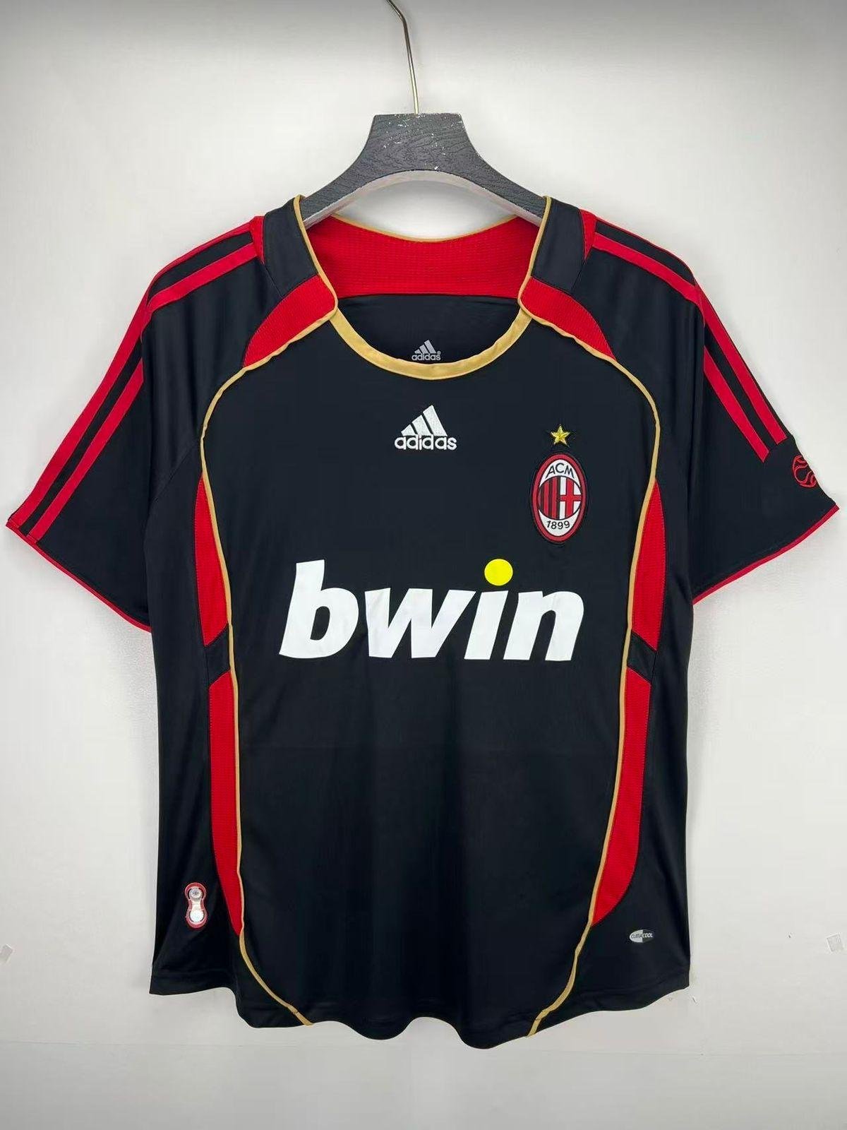 Relive a legendary season with the AC Milan 2006-07 Third Jersey — a tribute to the Rossoneri’s unforgettable Champions League triumph. Dressed in a sleek all-black design with subtle red accents and crisp white Adidas stripes, this jersey exudes class, dominance, and European prestige.